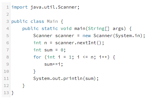 n이 주어졌을 때, 1부터 n까지 합을 구하는 프로그램을 작성하시오.